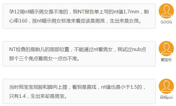 虽然孕12周nt暗示男女方法有两种,方法也有详细说明,但是NT看生男生女,本来就是存在争议的话题,数值大小、nub点区分的准确性并不高。