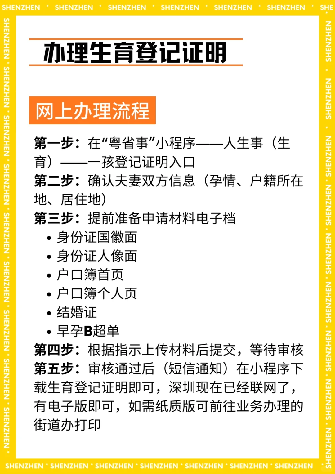 现在建档除了常规的结婚证、B超单什么的,只需要额外办理这一个证件就可以了,之前要求的其他证明都不需要了,省内户口在粤省事就可以全程网上办理,省外户口需要去街道办申办,流程我都贴上去了。